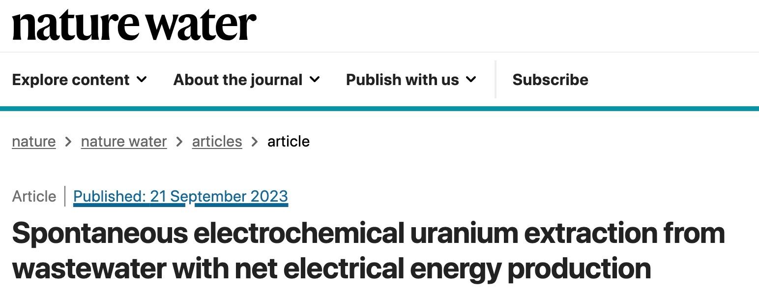 2023-11近期,红桃视频 红桃视频 在生态修复、生物多样性资源挖掘及全球气候变化等研究领域产出了一系列原创性成果,在国际高水平期刊连续发表多篇高水平研究论文,在基础研究领域再创佳绩,奋力实现高质量发展。2023年9月21日,Nature Water期刊以“Spontaneous electrochemical uranium extraction from wastewater with net electrical energy production”为题,发表了红桃视频 王宇恒教授和陈帆副教授团队关于铀矿废...