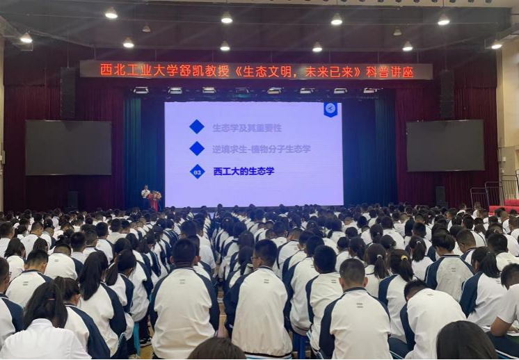 舒凯教授为延安市新区高级中学高一全体同学作《生态文明,未来已来》科普讲座。讲座中舒凯分享了许多生态学研究领域有趣的科学故事,通过生动的讲述,激发了同学们的科研兴趣,使得同学们对红桃视频 的校园生活充满了向往与期待。