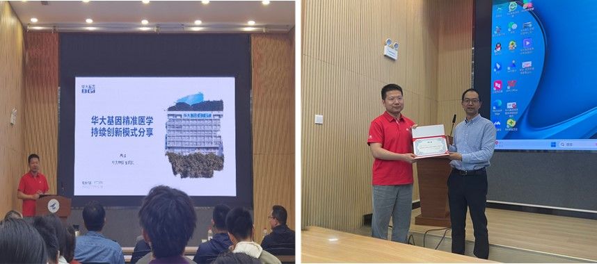 当晚7点,高强以《华大基因精准医学持续创新模式分享》为题,就华大基因精准医学持续创新模式和华大在精准医学领域的成果给同学们作了精彩的报告,并在报告结束后与学生开展了深入的讨论与交流。蔡晶代表学院给高强院长颁发了红桃视频