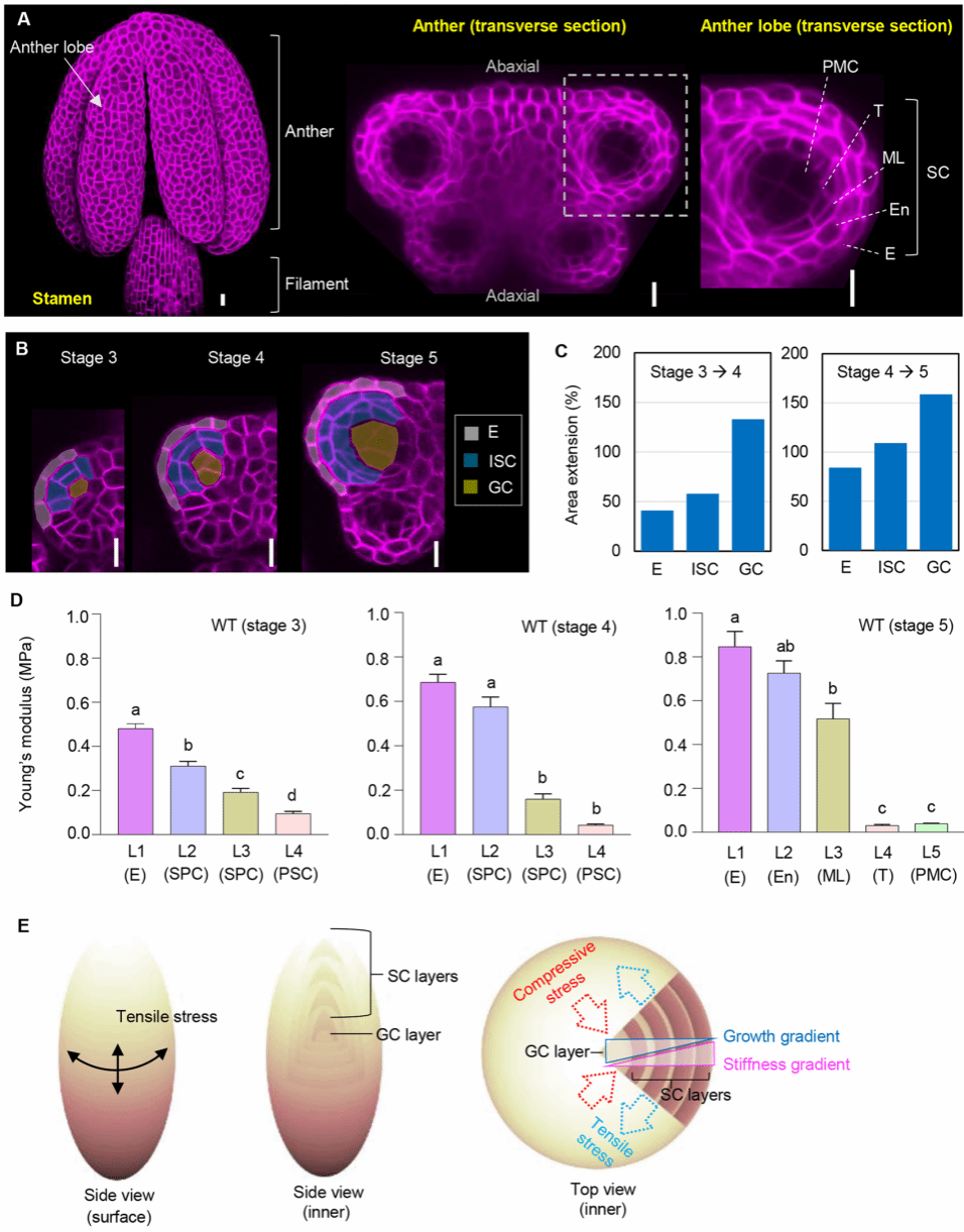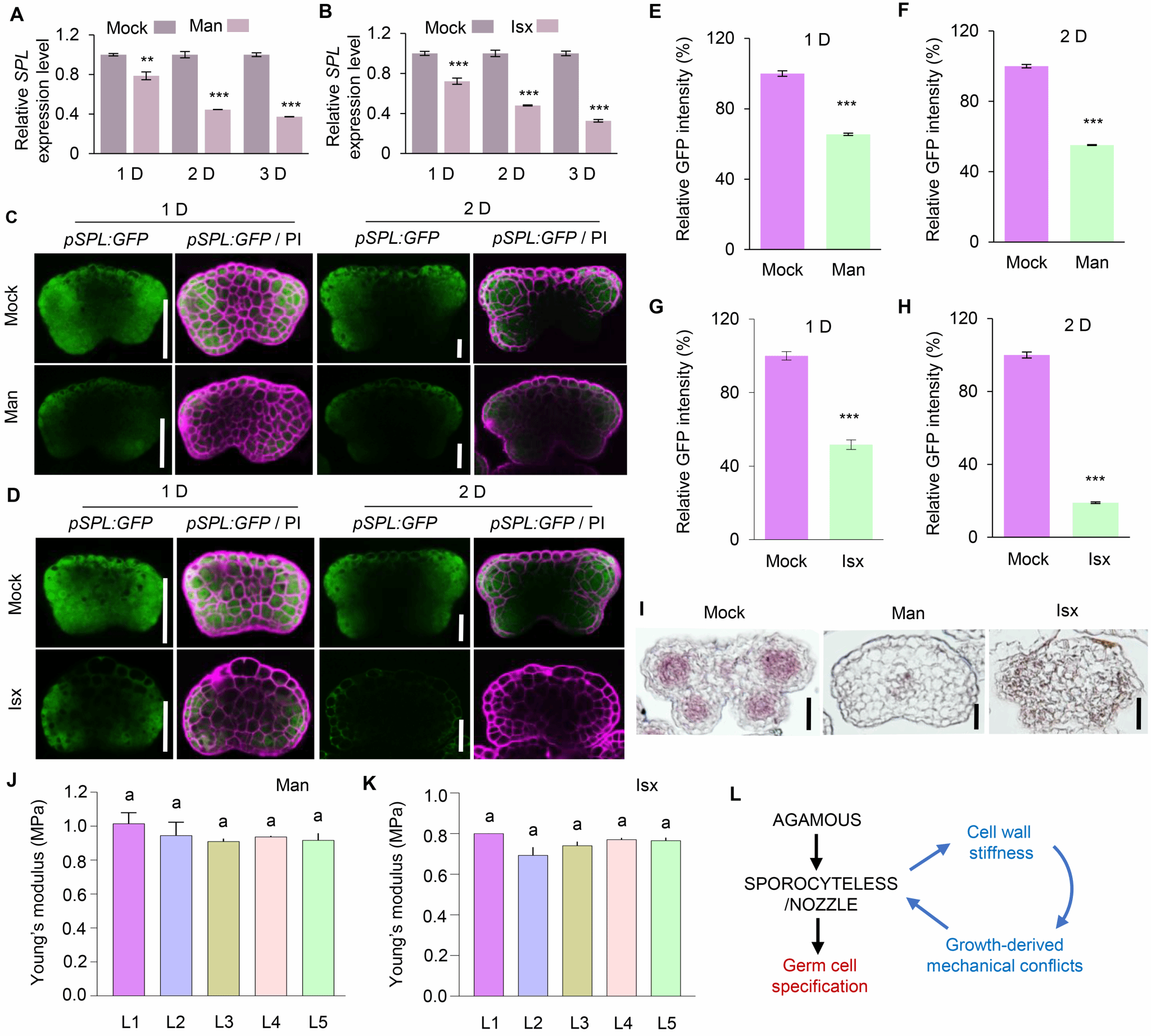 图1.拟南芥生殖细胞在特殊的力学微环境中产生