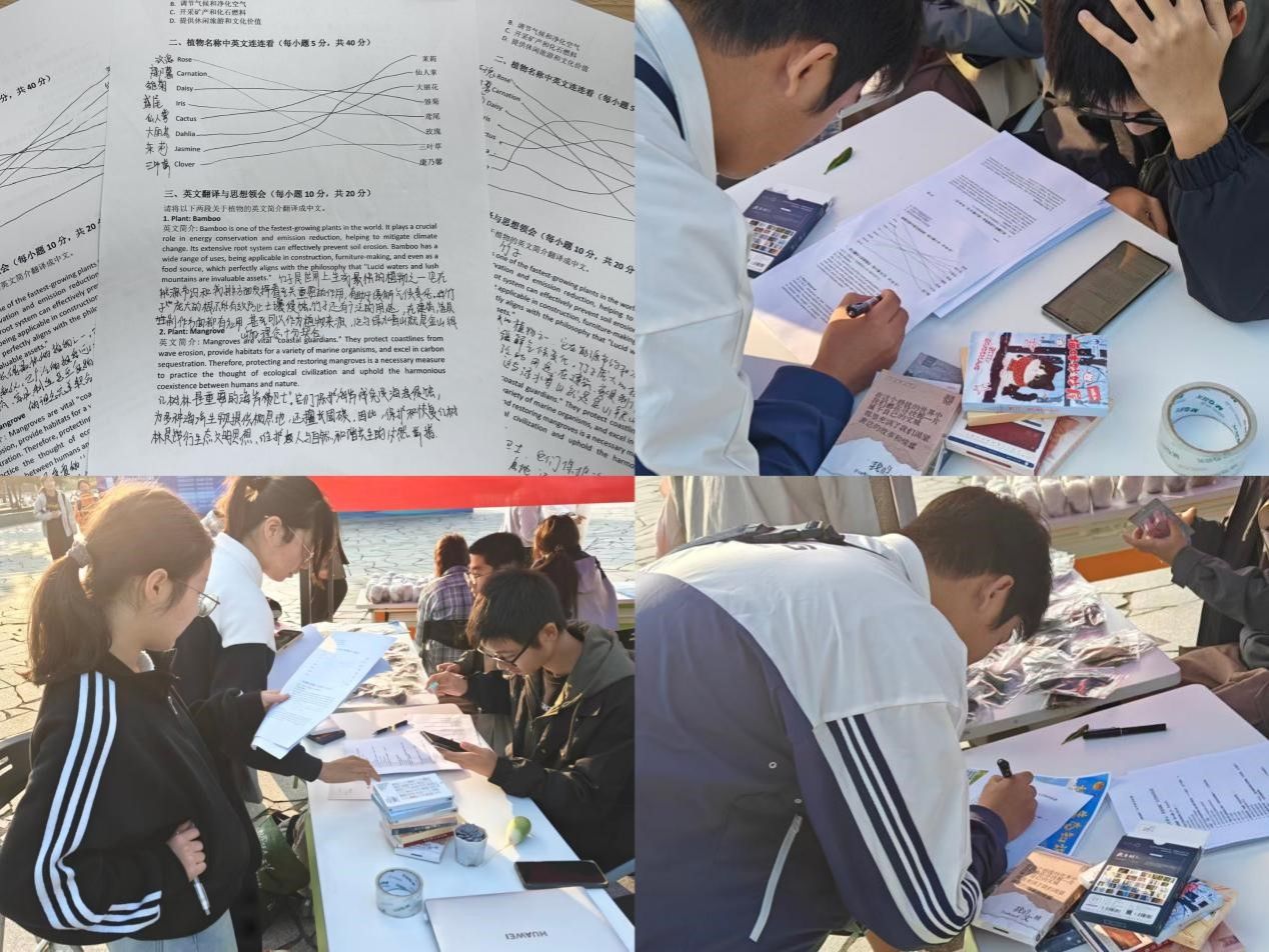 科普问答环节涵盖碳达峰碳中和、生物多样性保护、植物英文名称辨认等多元内容,其中双语问答题型成为一大特色。现场参与者积极答题,在互动交流中深化了对生态知识的理解,也锻炼了专业英文的应用能力。据统计,参与者们累计答题超千道,进一步筑牢了同学们绿色发展的思想根基。