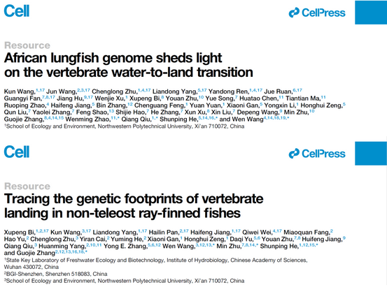 联合国内外合作者完成的题目分别为“African lungfish genome sheds light on the vertebrate water-to-land transition”和“Tracing the genetic footprints of vertebrate landing in non-teleost ray-finned fishes”两篇研究论文。