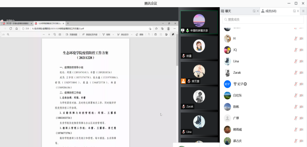 此外,学院常务副院长邱强再次强调,疫情防控期间一是各位研究生导师要和学生及时沟通,指导各位同学合理安排时间,不要耽误学业;二是学院负责学生工作和教学工作的老师要更加积极地参与到学生的管理服务中,为学生们的在线教学开展做好充分准备;三是全院师生要严格按照学校和学院的工作安排,主动配合遵守疫情防控期间各项规定,互帮互助、共克时艰。