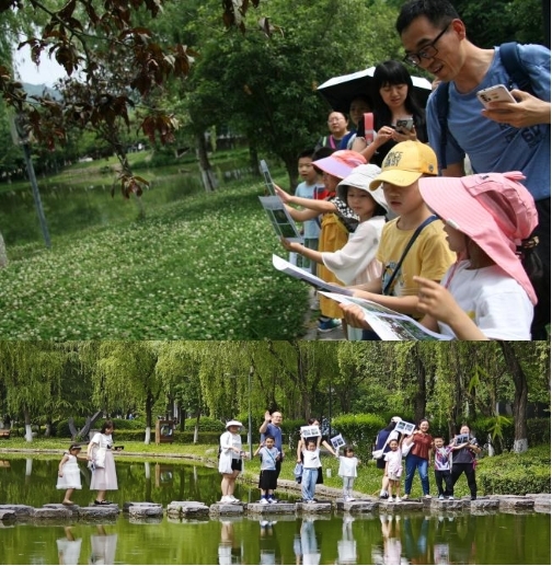 讲座结束后,孩子们在志愿者的带领下,兴致勃勃地开始植物拍照打卡。他们怀揣着对自然的好奇与热爱,穿梭在生机勃勃的启真湖畔,追寻着各类植物的足迹。孩子们根据图片提示,细致地观察着植物的每一个细节。为了加深小朋友们对植物的了解,活动最后还展示了利用彩纸、剪刀、胶水等材料制作植物标本的过程。
