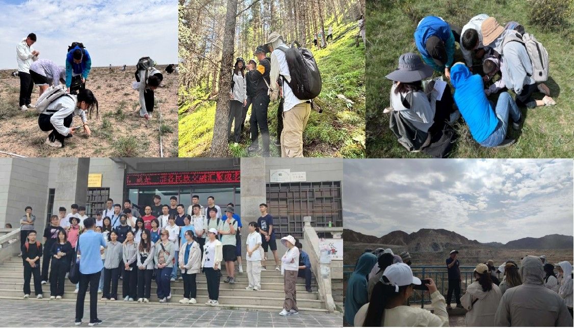 张子良教授带领联合实习团队依次赴甘肃省金昌市青石岗戈壁滩、典型冲积扇区域和金川国家矿山公园,青海省青海省门源县护林站的青海云杉林区等不同生态系统开展了微生境样方调查,统计物种组成及多度、测量各物种分盖度、估计总盖度等,调查植被组成类型以及不同植物的种间关系。此外,联合实习团队还赴甘肃省武威市西夏博物馆、金昌市永昌县者来寨和御山峡汉明历史文化景区参观学习,独特的地貌环境和民俗文化让同学们领略到了不同地域文化的独特魅力与深厚底蕴。
