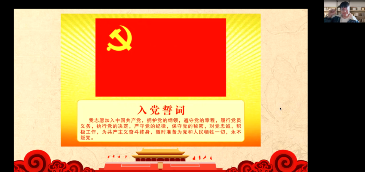 本次活动共分为三部分。首先是,支部书记王淋淋带领支部参会人员重温入党誓词这一刻提醒每位毕业生党员牢记党员使命,永葆政治本色!并且希望支部全体党员同志能够不忘初心,薪火相传。
