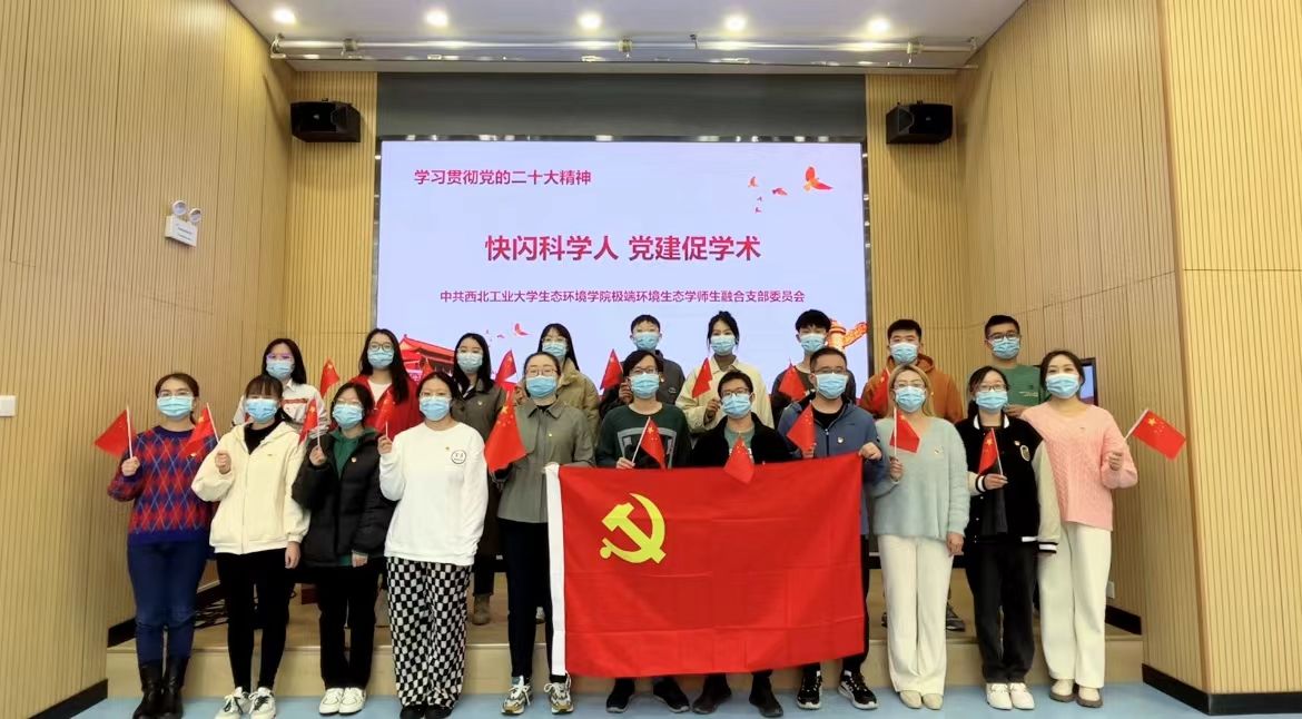 极端环境生态学师生融合党支部共有教师党员5人、研究生党员13人,党支部在第一时间组织观看党的二十大开幕会,深入学习党的二十大报告全文,积极研究策划学习贯彻党的二十大精神主题党日活动。“快闪科学人,党建促学术”主题党日活动,每2周周三中午举办一次,以党支部为主体,由党员带领该学科方向全体师生,在学习贯彻党的二十大精神的基础上,以习近平生态文明思想为指导,围绕生态文明建设过程中所涉及到的基础科学问题,开展广泛研讨交流。青年导师和学生充分利用日常碎片化的时间,提高理论学习成效,激发科技自立自强的学术情怀,在深度的交流中共同成长、共同进步,不断提升育人成效。
