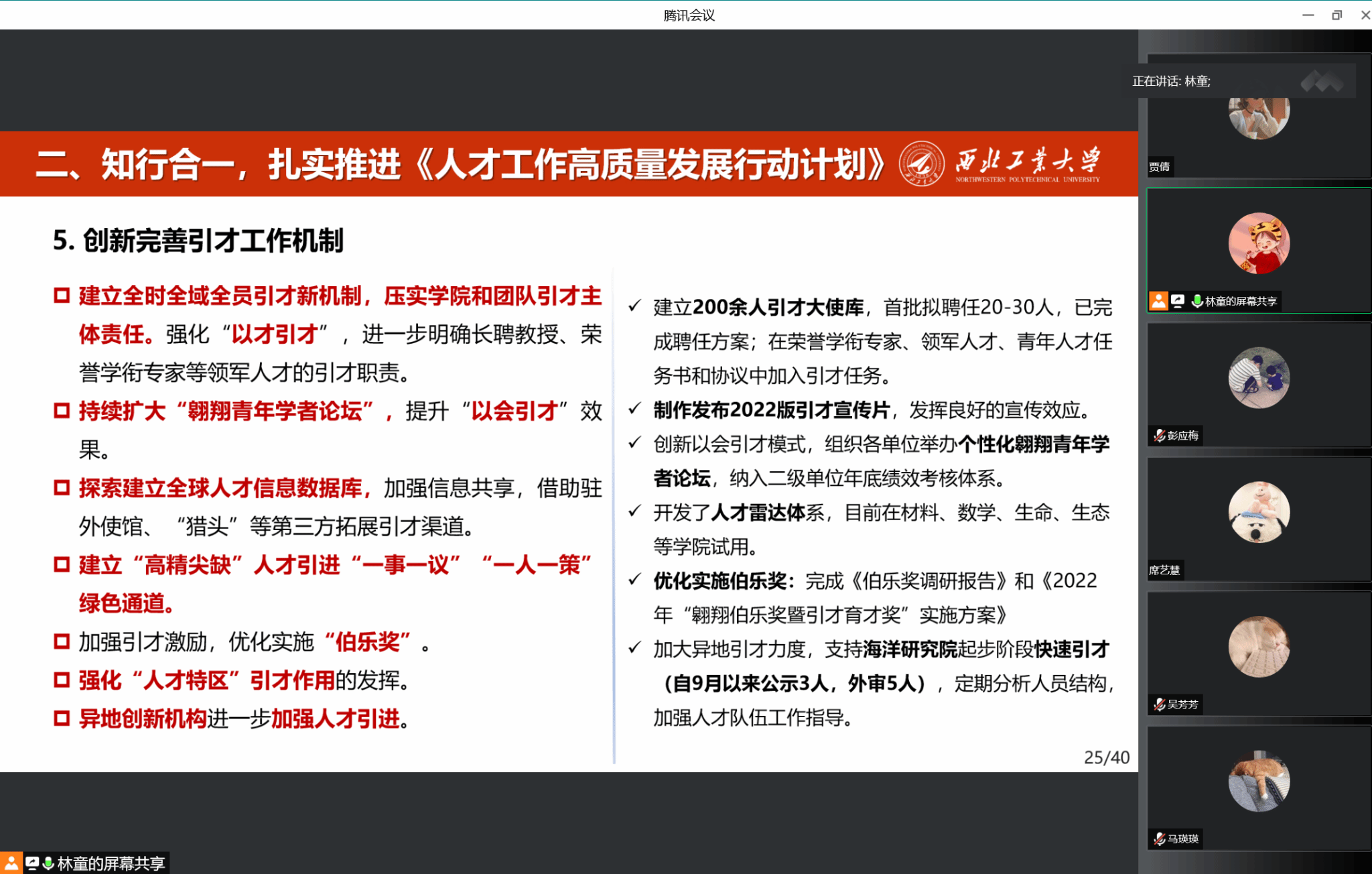 作为年轻学院,要解放思想,不拘一格,迈大步子,将党的二十大精神与学院实际工作情况相结合,全面推进人才工作二十条贯彻落实,全方位的培养、引进、用好人才。