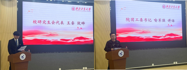 校研究生会代表王睿和院团工委书记喻军强先后致辞,充分肯定了过去一年来院研究生会各项工作取得的成效,对研究生代表大会的顺利召开表示祝贺