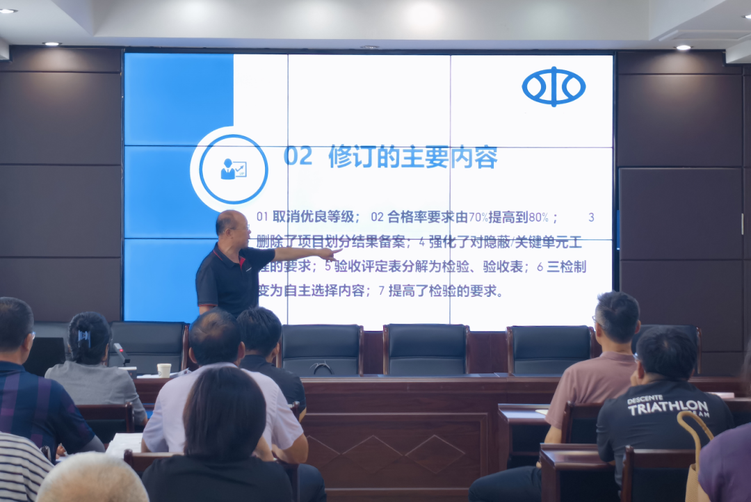 本次培训邀请红桃视频 专家冯国军,针对2025版《水利水电工程单元工程施工质量验收标准》(SL/T631.1-631.4)的核心修订内容逐条逐项地进行了介绍。通过实例解析、重难点剖析等方式,冯国军将枯燥的标准条文转化为通俗易懂的工程实务说明,有效提升了质量管理人员的业务水平,推动了新规范全面普及,为全市水利工程建设高质量发展打下坚实基础。